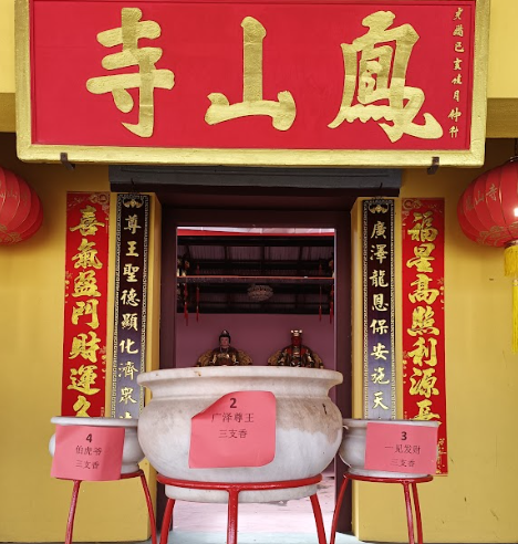 鳯山寺位于万里望东区,从大门前的牌框显示,其至少创立于光绪己亥桂月仲秋(1899年),至今已有超过125年的历史。鳯山寺主要拜的是广泽尊王。广泽尊王圣号为“威镇·忠应·孚惠·威武·英烈·保安广泽尊王”,简称广泽尊王,此外尚有郭圣王、郭王公、圣王公、保安尊王诸称。据传广泽尊王宝姓郭氏,名忠福,系五代后晋天福年间人氏,郭子仪十一世孙,开闽郭在嵩五代孙,乐华之孙,理柱之子,后唐同光初年(923年)安溪石排山下蓬莱崇善里诞生,为杨荏长者放牧,后来机缘得到崔芸公堪舆恩师献风水宝地并指引迁居现泉州南安诗山公园内龙山宫位置居住,时龄十六岁在诗山凤山寺第二殿左边大房古址,盘膝于古藤上坐化得道成神。据史志记载,广泽尊王成仙登神后,神通广大,有求必应,行仁赐福,兴神助战,功勋卓著。自宋至清,获历朝皇帝六次敕封祭典。